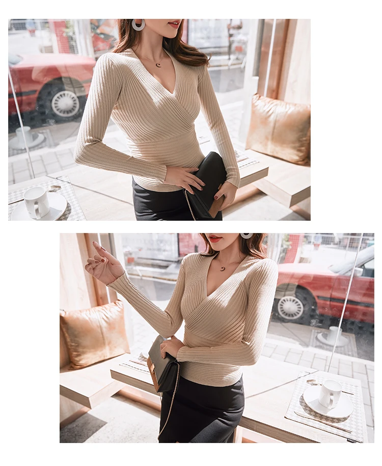 Zjaiss Women New Fashion Slim Long Sleeve Knit Pullovers 2026 Autumn Winter Sexy Deep V Neck Sweater Korean Style Basic Tops