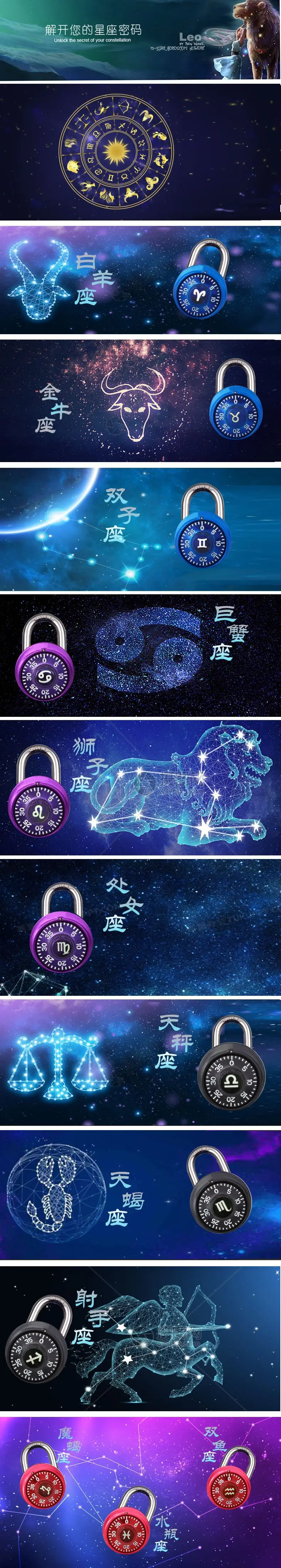 Zodiac Combination Turntable Lock Retro Turntable Metal Mini Keyless Padlock Safe Drawer Locker Lock