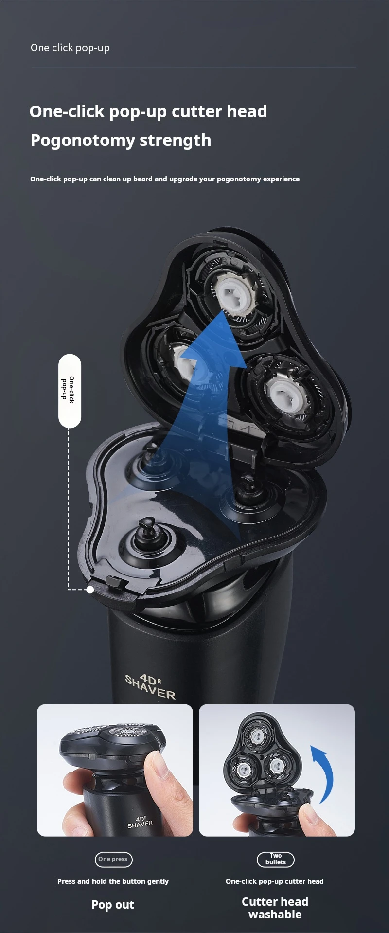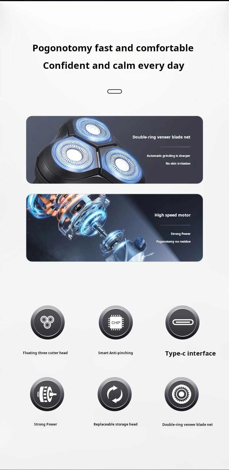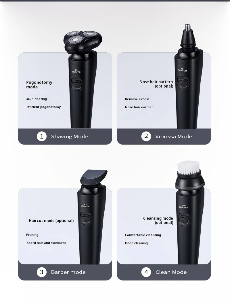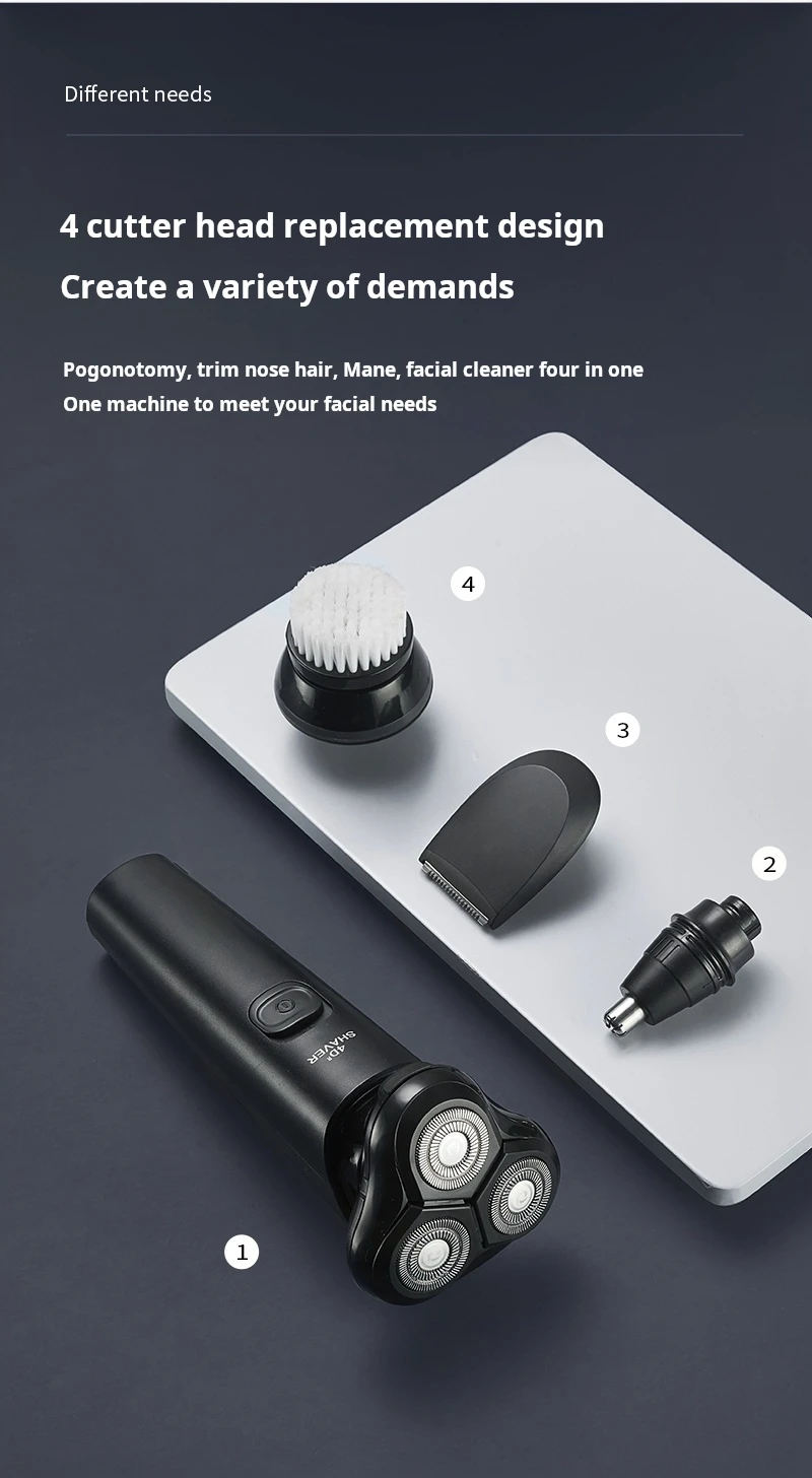 - Function: floating head,Wet shave,Dry shaving,Washing knives under water,Fast Charging,Charging indication