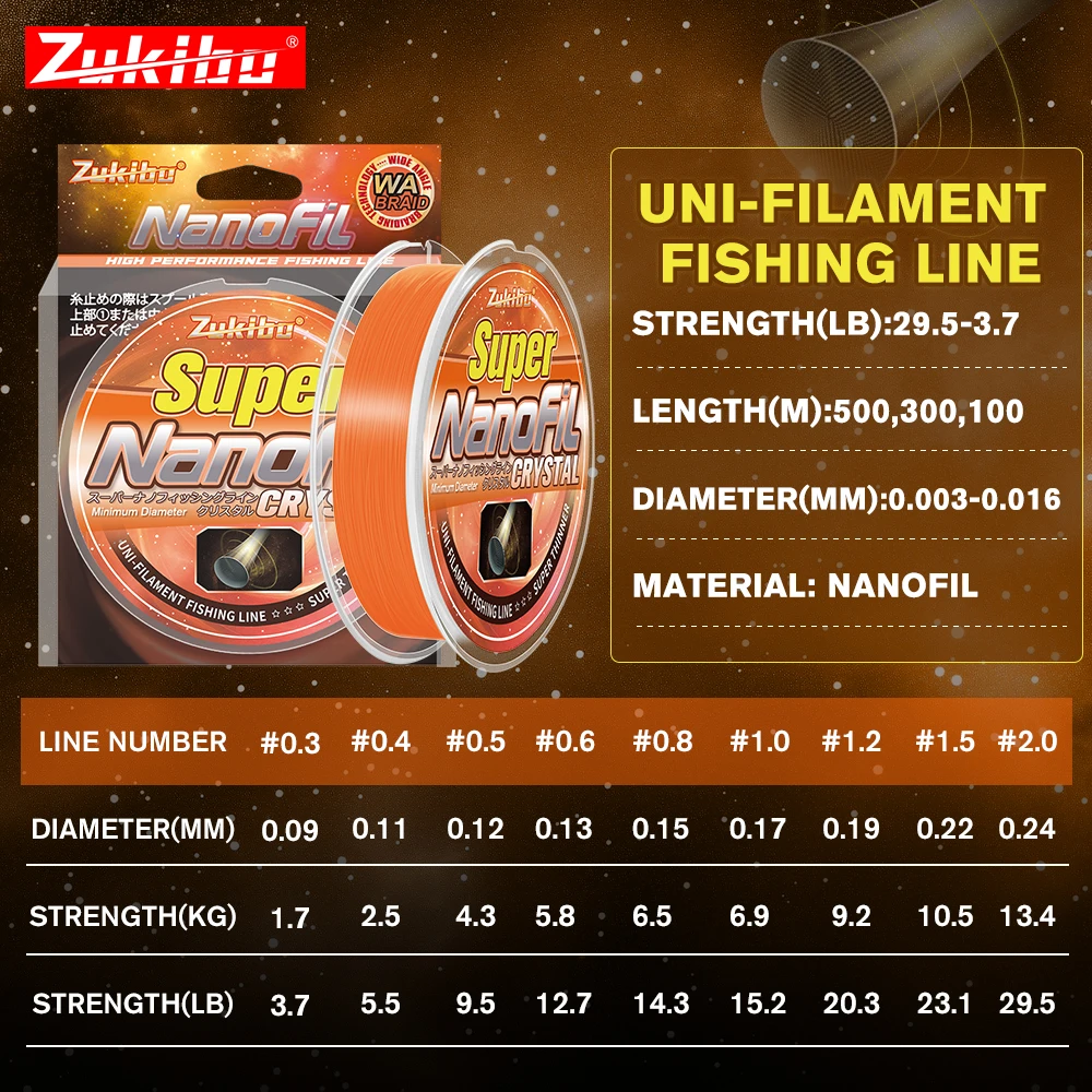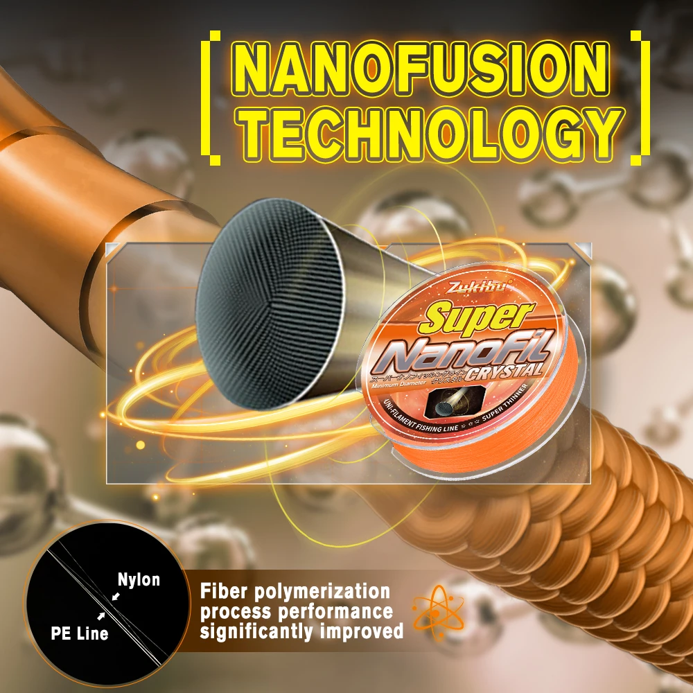 ZUKIBO Nanofil revolutionizes fishing lines as the unique Uni-Filament. Thermally fused from 100% Dyneema fibers nanofilaments , it creates an incredibly strong yet ultra-thin line that casts farther with less effort. With near-zero stretch for superior sensitivity and zero memory to prevent tangles, this spinning-reel optimized line delivers deeper lure action and unmatched performance.